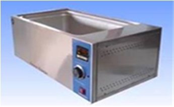 Con control digital tipo PID con sensor pt 100,  con microprocesador programable desde temperatura ambiente hasta 100°C,  resolución de 0.1°C (al nivel del mar), con memoria No volátil, resolución de 0.1°C, además tiene un control análogo tipo hidráulico de seguridad que toma el mando en caso de falla del control principal. Está construido completamente en acero inoxidable y para obtener la uniformidad tiene un ingenioso sistema de burbujas que mueve el agua constantemente. El interior mide 30x15x15 cm. de profundidad y tiene una capacidad de 6 litros, aislado con fibra de vidrio. Dimensiones Exteriores de 47 x 22 x 25 cm. (Largo x Ancho x Altura). Opera con 120 volts, 60 ciclos, 800 watts. Fab. Nal.